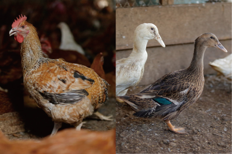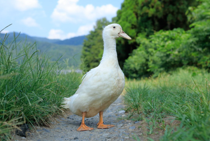 ななたに鴨はチェリバレー種。雛から養鶏場に入ってきます。